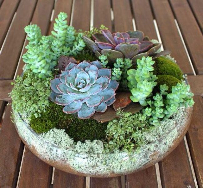 The huge succulent garden with different size and colour plants in a big round pot. This arrangement must be pre-ordered. The price depends on the number of plants and the type of pot. The pot can be changed.