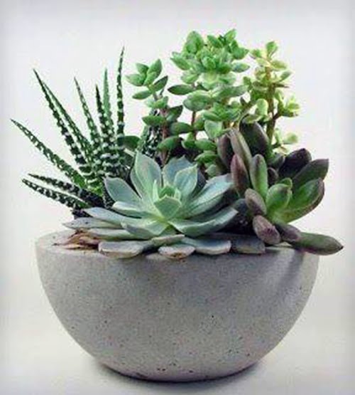 Five different succulents in a cement round pot. The option can vary depending on stock. The pot can be changed.